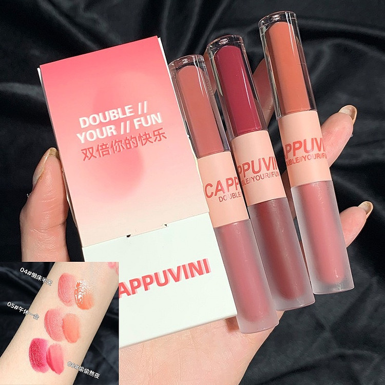 پک 3 عددی لیپ گلاس و رژلب مایع دو سر Cappuvini