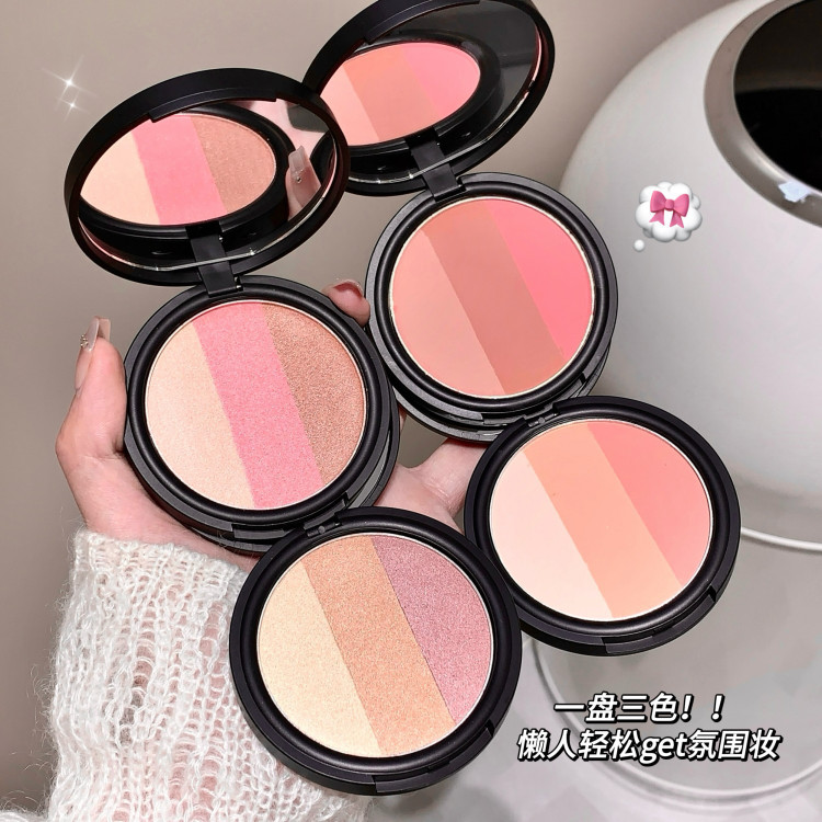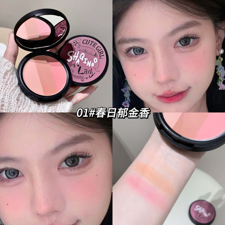 پالت رژگونه و هایلایتر و سایه پینترستی shaqinuo ست آرایشی مسافرتی رژگونه پودری کره ای