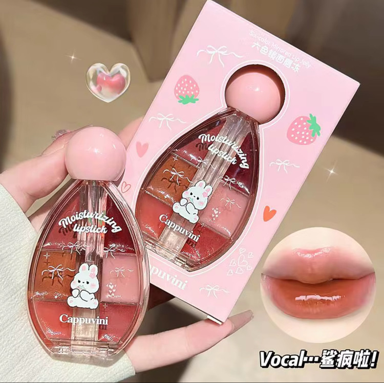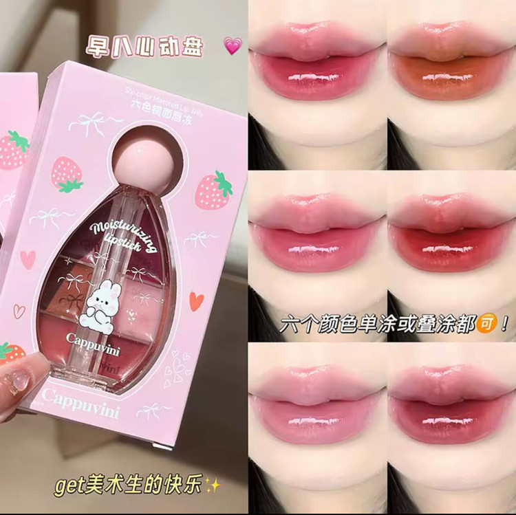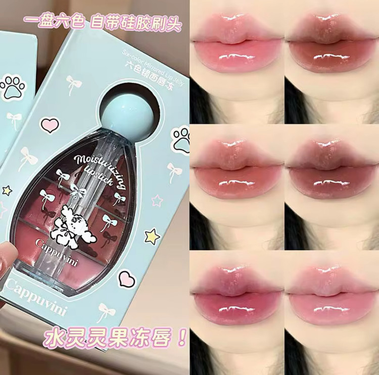 پالت شش عددی لیپگلاس ژله ای آینه ای cappuvini✨️🎀🐈
